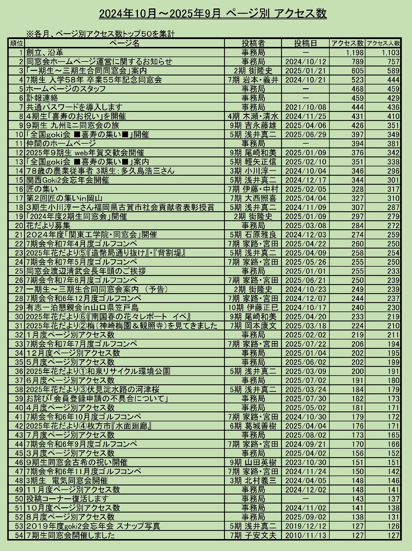 9月度のページ別アクセス数トップ10をお知らせします。