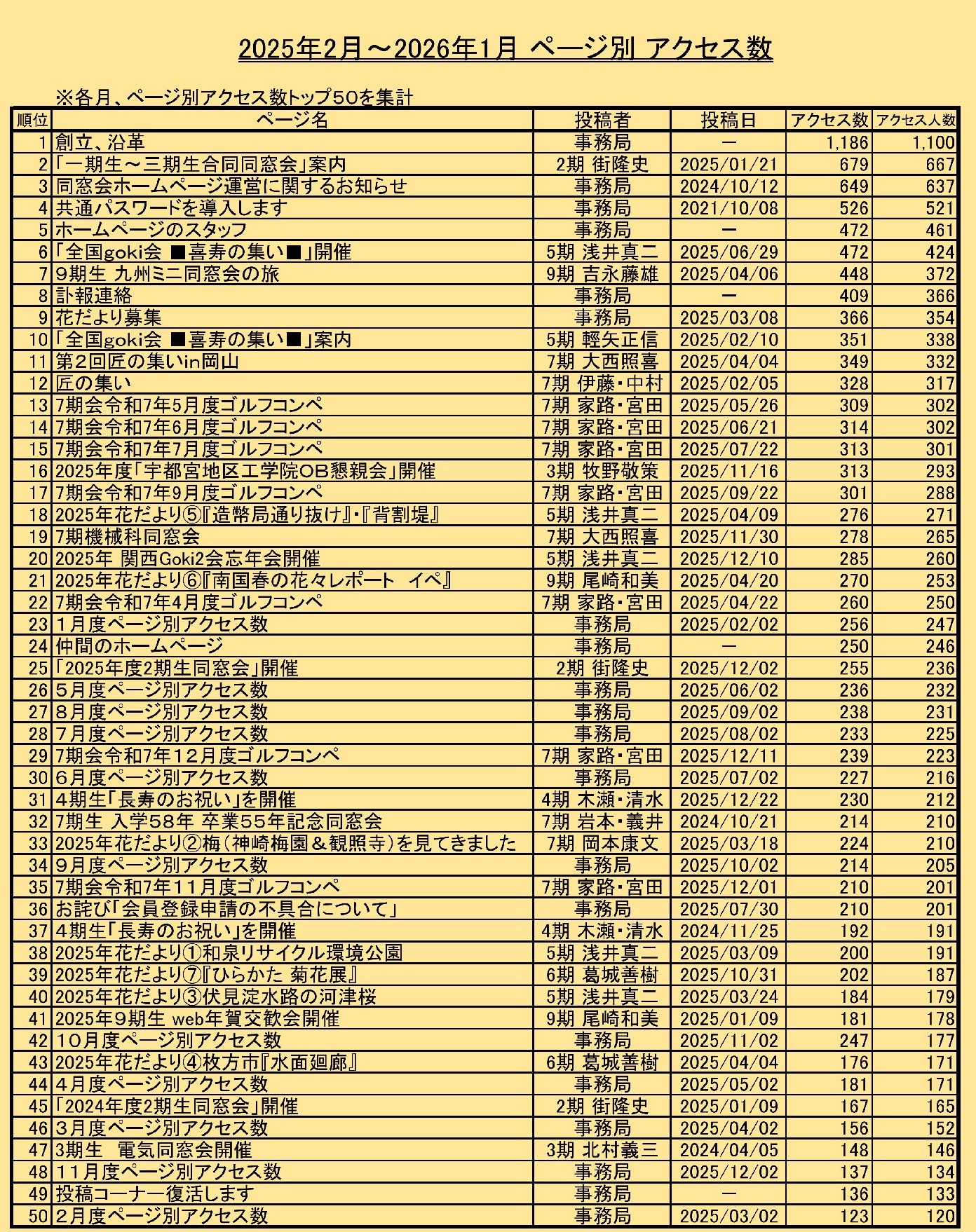 同窓会ホームページ運営に関するお知らせ |